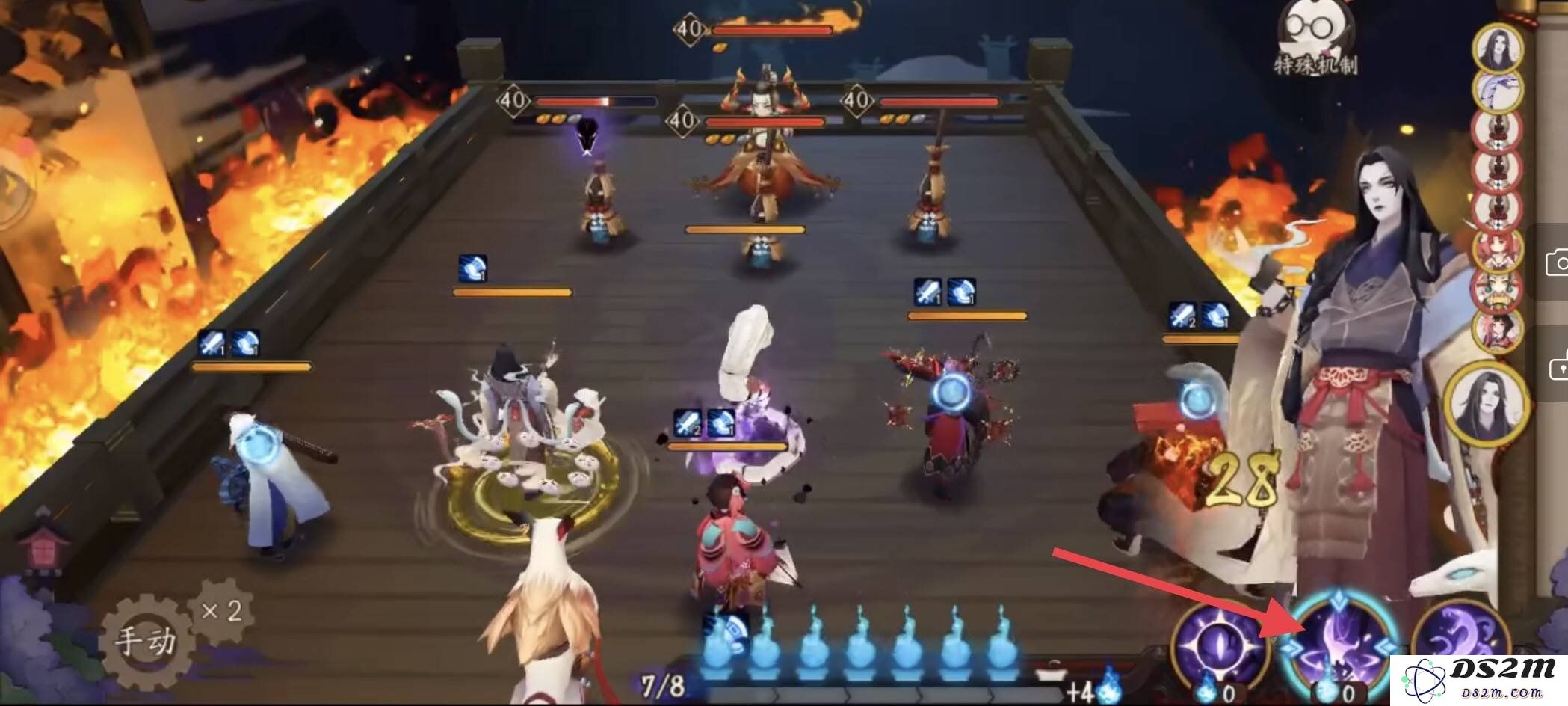 观察敌方行动:在战斗中及时观察八岐的技能释放和位置变化。